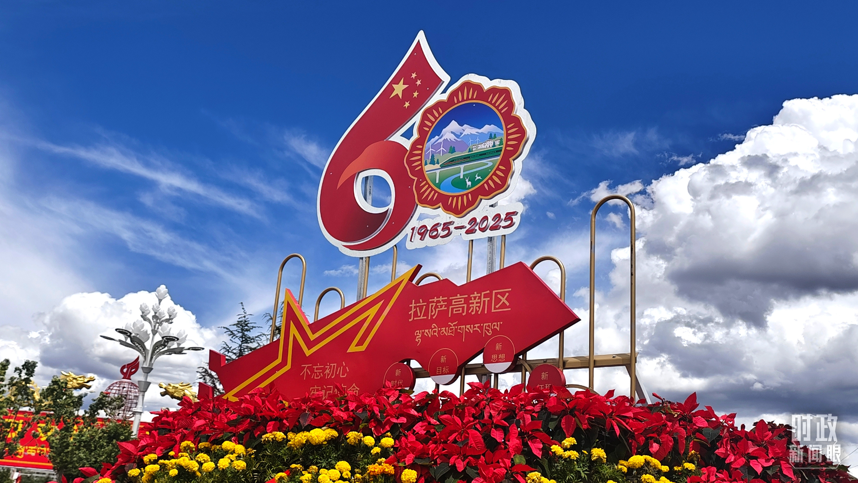 西藏自治區(qū)成立60周年標識。(總臺央視記者韓銳拍攝)