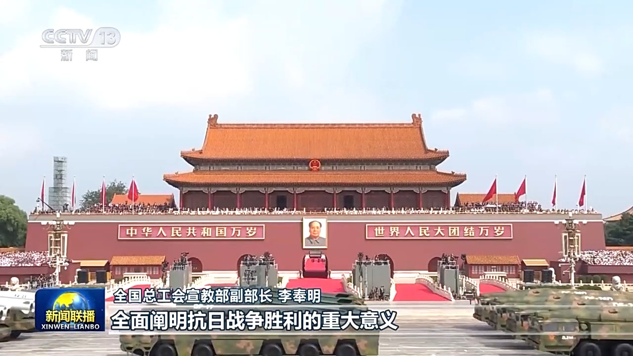 全國總工會(huì)宣教部副部長 李奉明:習(xí)近平總書記的重要講話,從全民族、全人類的高度,全面闡明抗日戰(zhàn)爭勝利的重大意義。莊嚴(yán)宣示中國人民維護(hù)世界和平與發(fā)展的堅(jiān)定立場,我們深刻認(rèn)識(shí)到中國共產(chǎn)黨的中流砥柱作用是抗日戰(zhàn)爭勝利的關(guān)鍵。