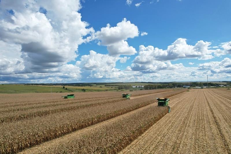 2025年9月10日,在北大荒集團黑龍江建設農(nóng)場有限公司第三管理區(qū),大馬力機車在進行玉米搶收作業(yè)。