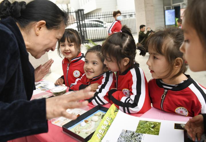 2024年4月16日,在新疆烏魯木齊市天山區(qū)南灣街街道,昌樂園幼兒園的小朋友在老師的講解下了解春蠶的生長過程。谷雨節(jié)氣將至,烏魯木齊市一些社區(qū)紛紛開展形式多樣的主題活動,讓市民了解有關谷雨節(jié)氣的知識,體驗傳統(tǒng)文化的魅力。