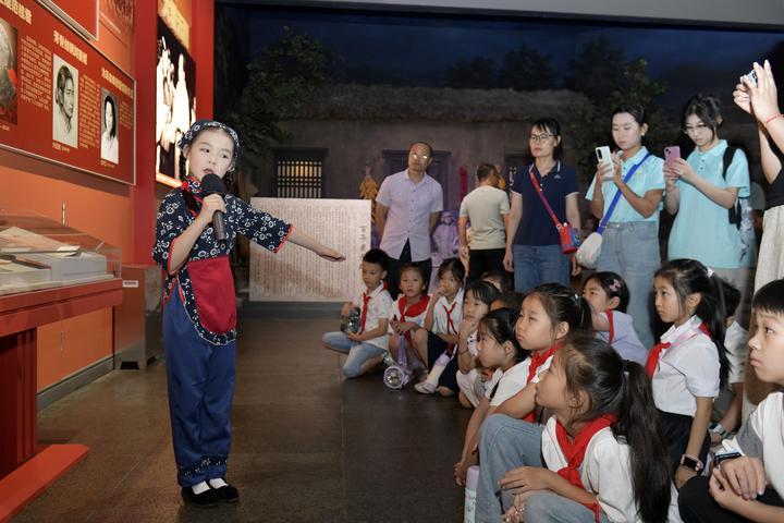 2025年8月7日,在山東省臨沂市沂蒙革命紀念館,沂蒙紅孩子文藝先鋒隊的房沫昕在講述紅色故事《沂蒙紅嫂祖秀蓮》。2024年9月,位于沂蒙革命老區(qū)的山東省臨沂市以“傳承沂蒙精神”為宗旨組建沂蒙紅孩子文藝先鋒隊,通過歌舞、朗誦、故事講述、舞臺劇等紅色主題文藝節(jié)目,增強紅色文化感染力,不斷為紅色基因代代相傳注入新生力量。2025年5月12日,云南省昭通市威信縣第一中學學生在大屏上紅色研學實踐基地體驗編織草鞋。200余名學生在紅色研學實踐基地親手編織草鞋、制作蠟染,并參觀了扎西會議舊址、紅軍長征過云南情景體驗館,在實踐互動中重溫紅色革命歷史。威信縣立足紅色文化資源優(yōu)勢,先后建成扎西會議紀念館、紅軍長征標語館等紅色文化展館,以舊址遺跡為“教室”,以文物史料為“教材”,設計開發(fā)多門精品研學課程和線路,在深入開展紅色研學系列活動中傳承紅色基因。