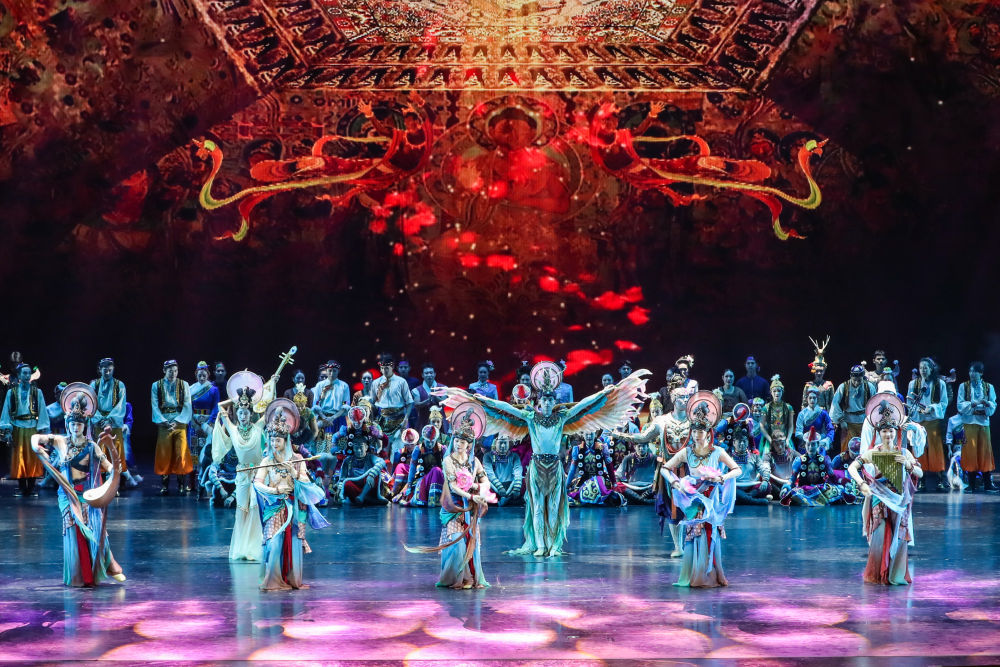 2025年9月20日,演員在敦煌大劇院表演新版《絲路花雨》。1979年,大型民族舞劇《絲路花雨》在中國(guó)西北誕生。編創(chuàng)者們從敦煌莫高窟的壁畫(huà)和彩塑中尋找靈感,將壁畫(huà)上凝固了千年的舞姿,轉(zhuǎn)化為動(dòng)態(tài)舞蹈語(yǔ)言。40多年來(lái),《絲路花雨》累計(jì)演出超4000場(chǎng),足跡遍布40多個(gè)國(guó)家和地區(qū),被譽(yù)為“中國(guó)舞劇的里程碑”和“活的敦煌壁畫(huà)、美的藝術(shù)享受”。此次新版歷經(jīng)兩年半創(chuàng)排,通過(guò)復(fù)原與創(chuàng)新對(duì)經(jīng)典藝術(shù)進(jìn)行當(dāng)代詮釋,彰顯了中華優(yōu)秀傳統(tǒng)文化的生命力。