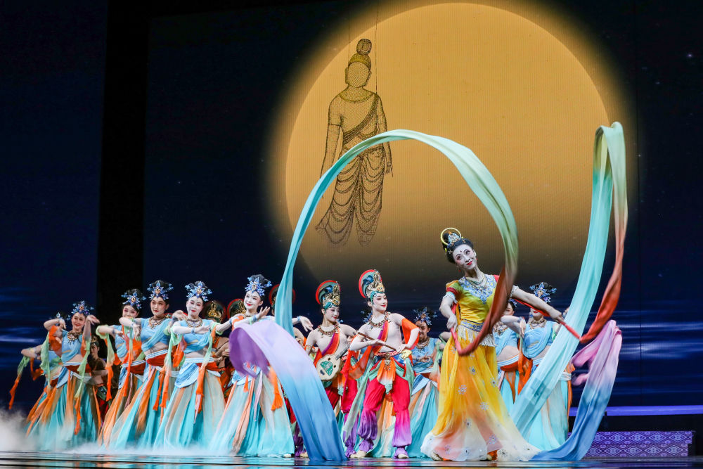 2025年9月22日,在敦煌舉辦的“相約敦煌”國(guó)際文化交流演出活動(dòng)上,甘肅省演藝集團(tuán)的演員展演《樂(lè)動(dòng)敦煌》選段?!稑?lè)動(dòng)敦煌》借助對(duì)莫高窟壁畫(huà)、藏經(jīng)洞古籍的解讀梳理,活化敦煌古樂(lè)器、古樂(lè)譜研發(fā)成果,通過(guò)全息投影等手段,結(jié)合專業(yè)演員的表演,將莫高窟壁畫(huà)中的樂(lè)舞盛景生動(dòng)再現(xiàn),讓觀眾沉浸式感悟傳承千年的敦煌樂(lè)舞文化魅力。