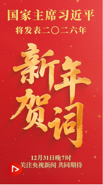 31日晚7時,國家主席習近平將通過中央廣播電視總臺和互聯(lián)網,發(fā)表二〇二六年新年賀詞。