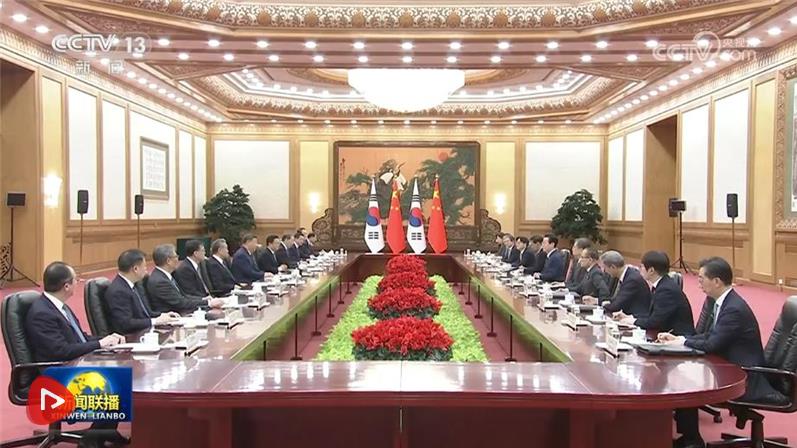 習(xí)近平指出,當(dāng)前世界百年變局加速演進,國際形勢更加變亂交織。中韓在維護地區(qū)和平、促進全球發(fā)展方面肩負(fù)重要責(zé)任,有廣泛利益交集,應(yīng)當(dāng)堅定站在歷史正確一邊,作出正確戰(zhàn)略選擇。80多年前,中韓兩國付出巨大民族犧牲,贏得抗擊日本軍國主義的勝利。今天更應(yīng)攜手捍衛(wèi)二戰(zhàn)勝利成果,守護東北亞和平穩(wěn)定。作為經(jīng)濟全球化的受益者,中韓要共同反對保護主義,踐行真正的多邊主義,為推進平等有序的世界多極化、普惠包容的經(jīng)濟全球化作出貢獻。
