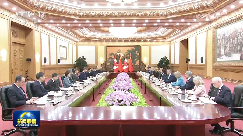 1月16日上午,國(guó)家主席習(xí)近平在北京人民大會(huì)堂會(huì)見來(lái)華進(jìn)行正式訪問(wèn)的加拿大總理卡尼。