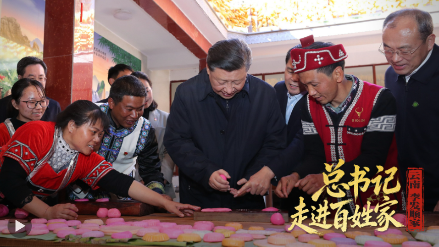 2020年春節(jié)前夕,習近平總書記走進云南騰沖市清水鄉(xiāng)三家村中寨司莫拉佤族村,同村民李發(fā)順一家制作當?shù)毓?jié)日傳統(tǒng)食品大米粑粑??倳浺贿B做了兩個,笑著說:“摁了個福字,再來一個喜字,有福有喜?!?/p>