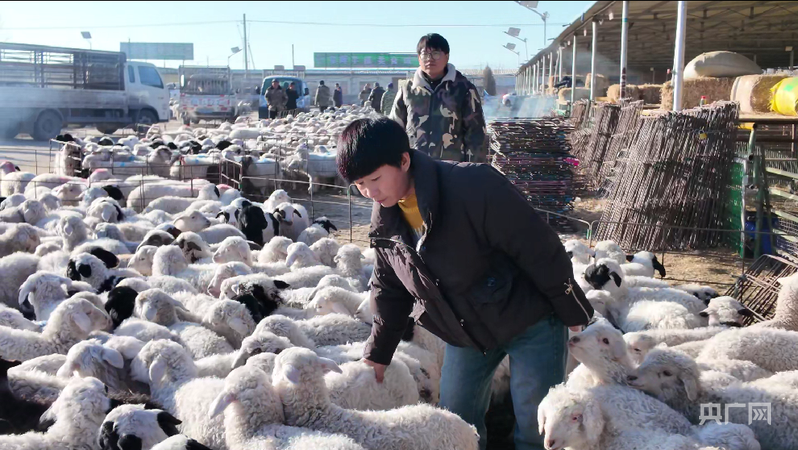 蒲萬(wàn)林在古浪縣牛羊交易市場(chǎng)挑選羊羔(央廣網(wǎng)記者 寇剛 攝)