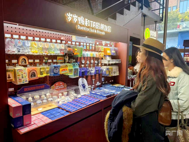游客正在選購“歲歲鴨”相關(guān)文創(chuàng)產(chǎn)品(央廣網(wǎng)記者 胡斐 攝)