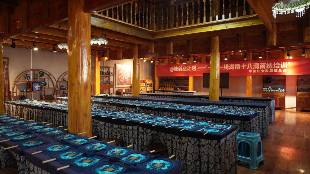 “十八洞片區(qū)苗繡鄉(xiāng)村振興示范基地”研學(xué)教室。新華社記者 戴斌 攝