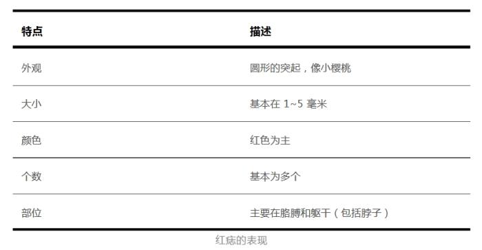 下面我們通過(guò)表格梳理了紅痣的主要特點(diǎn):