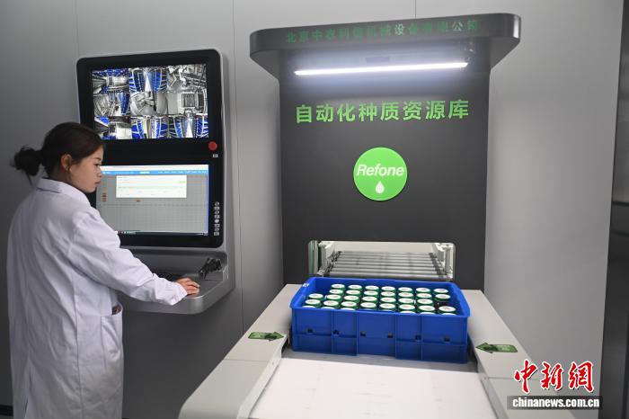 3月26日,在位于甘肅省定西市隴西縣的國家藥用植物種質(zhì)資源庫甘肅庫智能庫內(nèi),工作人員通過智能管控系統(tǒng)存取種子。中新社記者 李亞龍 攝
