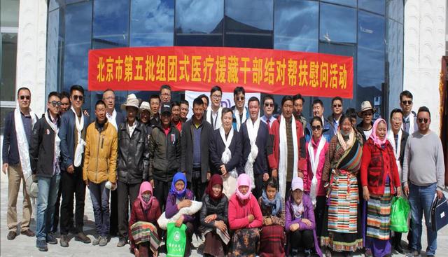 北京市第五批“組團式”援藏醫(yī)療人才開展與當(dāng)?shù)厝罕娊Y(jié)對幫扶活動助力脫貧攻堅。圖為援藏醫(yī)療隊員與當(dāng)?shù)亟Y(jié)對群眾合影。