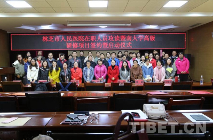 圖為暨南大學(xué)研究生培養(yǎng)項目在林芝市人民醫(yī)院啟動 圖片由廣東援藏醫(yī)療隊提供
