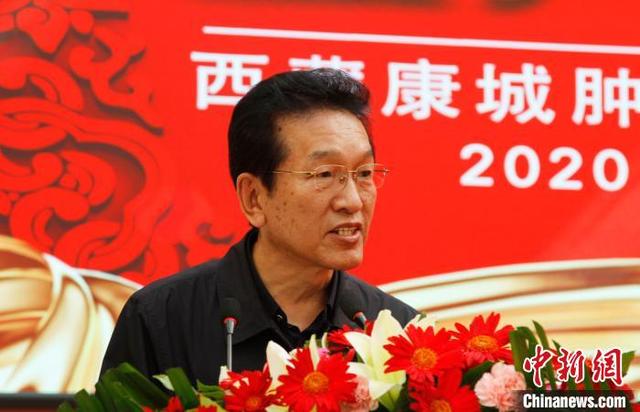 圖為西藏自治區(qū)政協(xié)副主席、自治區(qū)工商聯(lián)主席阿沛·晉源致辭。 趙朗 攝