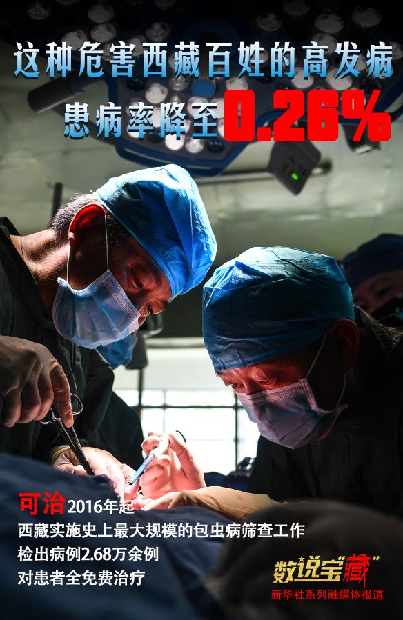 曾讓高原群眾談之色變的包蟲病,如今漸漸退出歷史舞臺。西藏自治區(qū)衛(wèi)生健康委主任格桑玉珍向記者介紹,經(jīng)過全人群篩查和免費(fèi)治療,西藏自治區(qū)74個(gè)縣(區(qū))中包蟲病人群患病率低于1%的縣(區(qū))達(dá)到70個(gè),患病率從2016年的1.66%下降至目前的0.26%,接近于全國平均水平。