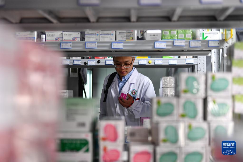 6月12日出發(fā)前,王振疆醫(yī)生在米林市人民醫(yī)院庫(kù)房領(lǐng)取藥品。新華社記者 晉美多吉 攝