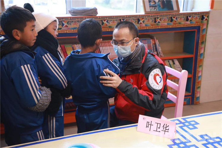 圖為解放軍總醫(yī)院心臟外科葉衛(wèi)華為當?shù)貙W生聽診篩查