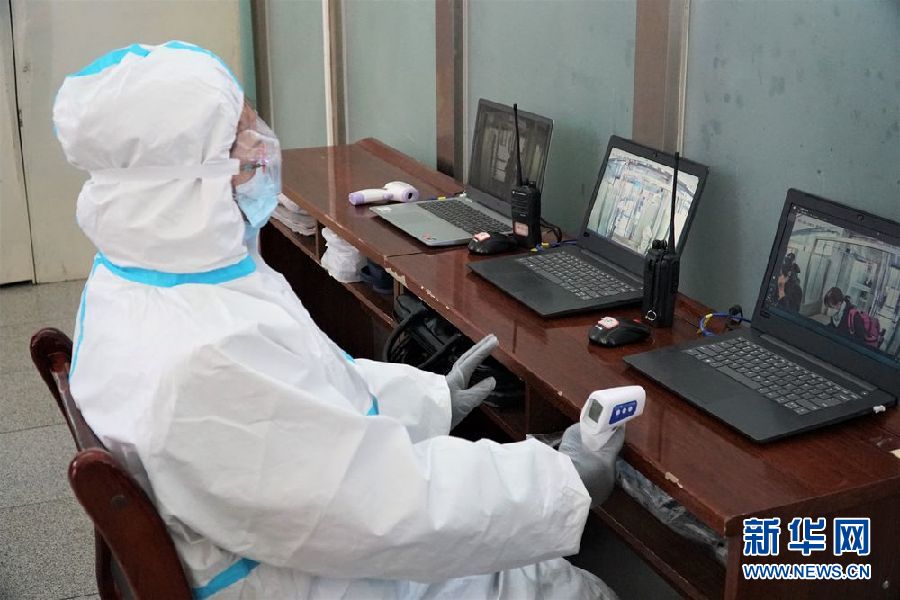 1月28日,西寧火車站工作人員身著防護(hù)服監(jiān)測(cè)進(jìn)站旅客體溫情況。新華社記者 嚴(yán)賦憬 攝