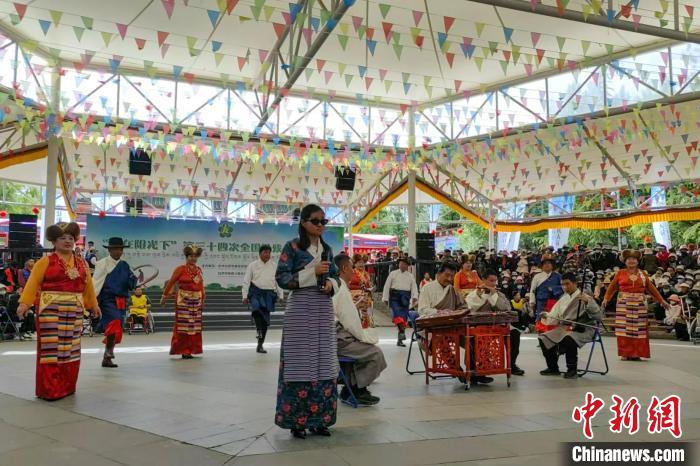 圖為西藏“咔噠嘎布”盲人樂團在宗角祿康公園演奏,該樂團已成立多年。西藏自治區(qū)殘聯(lián)供圖