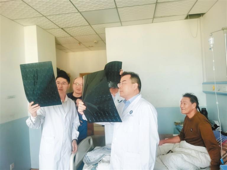 南方醫(yī)科大學(xué)第三附屬醫(yī)院院長黎程(右二)查看患者X光片?! ?/p>