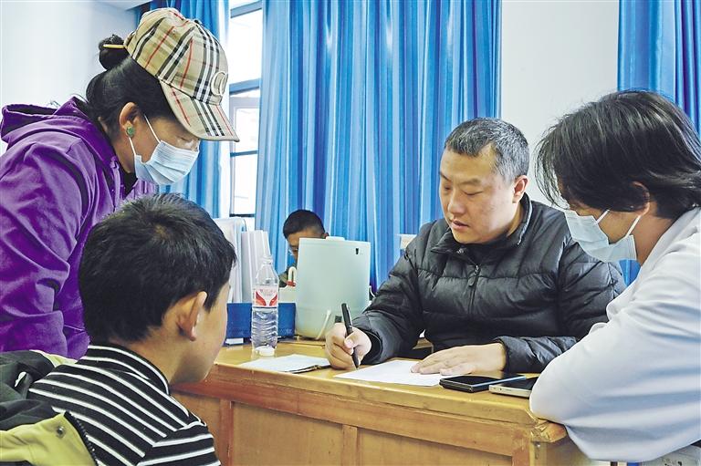 圖為在拉薩市城關(guān)區(qū)人民醫(yī)院內(nèi),江蘇“心佑工程”團(tuán)隊(duì)的醫(yī)生對(duì)前來就診的兒童進(jìn)行病史詢問、病例檢查。記者 王敏 洛桑 攝