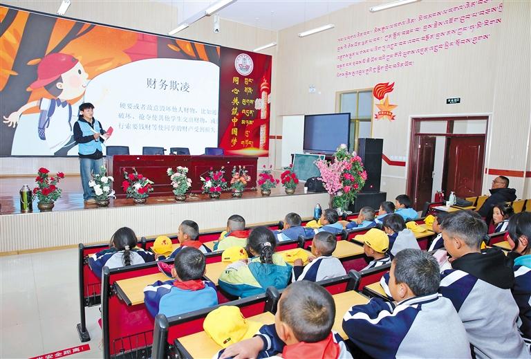 工作人員為學(xué)生們講解防詐騙、防欺凌等知識。記者 格桑倫珠 攝