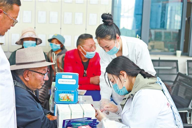 近日,那曲市色尼區(qū)達(dá)薩鄉(xiāng)央扣村駐村工作隊(duì)對(duì)接兩家藥企在該村開展“送醫(yī)送藥送健康”志愿服務(wù)活動(dòng)。工作人員為農(nóng)牧民群眾耐心細(xì)致解答健康問(wèn)題、宣講健康知識(shí)、開展疾病預(yù)防科普,切實(shí)提升農(nóng)牧民群眾健康意識(shí)和自我保健能力。