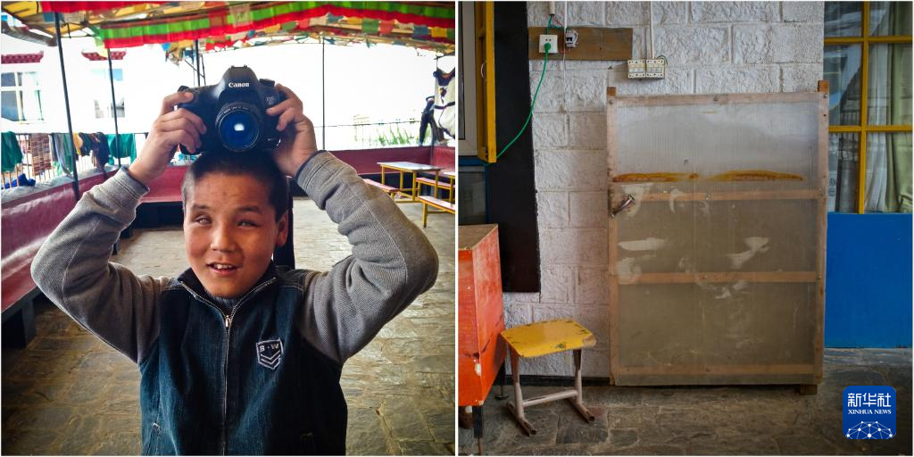 拼版照片:2013年10月9日,達瓦次仁在用相機拍照(左圖);達瓦次仁拍攝的照片(右圖)。