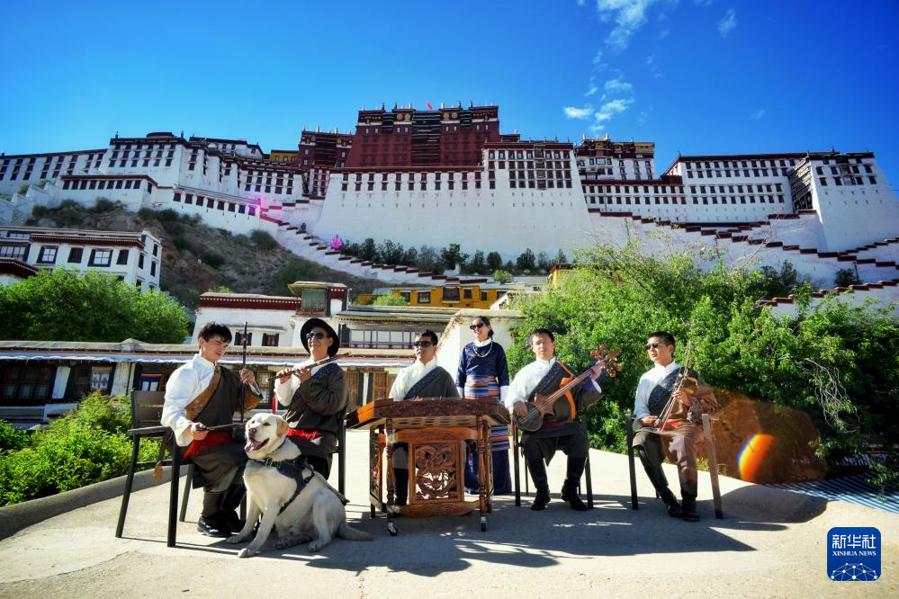 2025年6月17日,咔噠嘎布盲人樂團在布達拉宮前合影。(受訪者供圖)