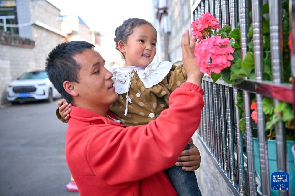 2025年10月10日,達瓦次仁在陪大女兒丹增曲音玩耍。