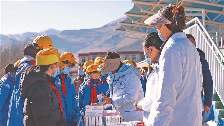圖為巡診醫(yī)療隊隊員為墨竹工卡縣南京實驗小學(xué)學(xué)生講解流感預(yù)防知識。記者 格桑倫珠 攝