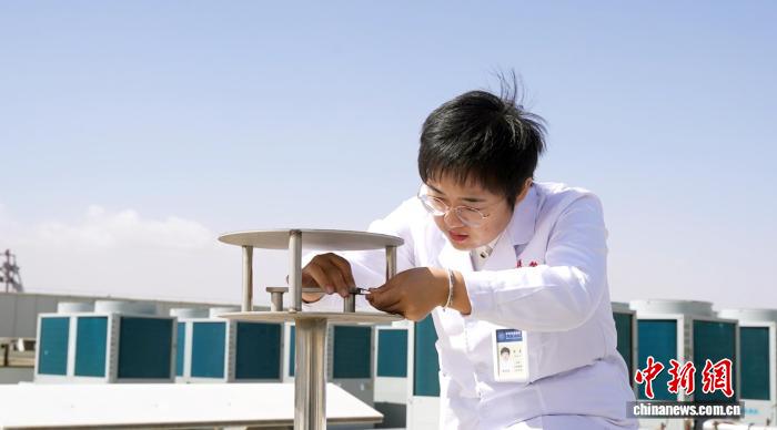 4月4日,內(nèi)蒙古托克托縣,托克托縣醫(yī)院變態(tài)(過敏)反應(yīng)科主任黃慧正在做花粉監(jiān)測?!〈薏┤?攝