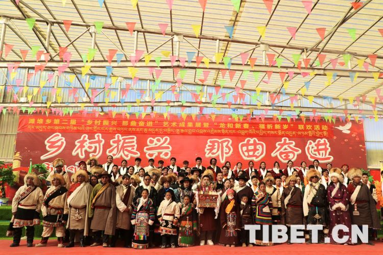 中國西藏網訊 2月10日,中國西藏信息中心“新春走基層”青藏線采訪組一行,來到西藏自治區(qū)那曲市安多縣灘堆鄉(xiāng),適逢當地在舉辦灘堆鄉(xiāng)第二屆“鄉(xiāng)村振興 那曲奮進”藝術成果展暨“龍和新春、福祈新歲”聯歡活動。采訪組一行來到鄉(xiāng)政府對面的灘堆鄉(xiāng)文化站,記者在現場看到許多穿著具有當地民族特色服飾的人在此聚集。在好奇心的驅使下,經詢問當地干部才知道,為喜迎2024春節(jié)和藏歷新年,感激黨和國家的關心關懷,歌頌如今來之不易的幸福生活,鄉(xiāng)村文藝隊特此精心準備了文藝節(jié)目,以嶄新的面貌和昂揚的精神展現新時代牧民群眾的精神風貌和幸福生活。