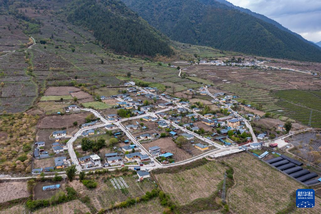 西藏林芝市察隅縣沙瓊村全景(4月19日攝,無人機(jī)照片)。