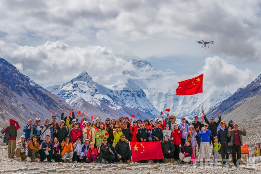 珠峰腳下 國旗飄揚