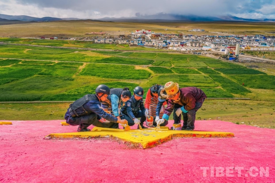 中國西藏網訊 國慶節(jié)前夕,西藏邊檢總站日喀則邊境管理支隊崗巴邊境派出所民警攜手轄區(qū)群眾,共赴中印邊境吉汝村為國旗和黨旗描紅,以行動獻禮國慶。(中國西藏網 通訊員/葉軼 記者/趙振宇)