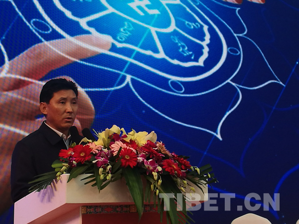 圖為拉薩市市長果果在招商推介會上講話