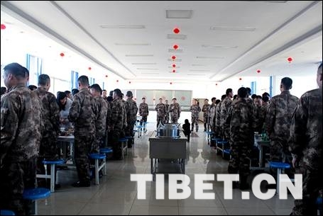 中國西藏網(wǎng)訊 金雞拂塵去,瑞犬送春來。又是一年春節(jié)時,歡歡喜喜過大年。春節(jié)是中華民族最隆重的傳統(tǒng)佳節(jié),人們在這一天都盡可能地回到家里和家人團(tuán)聚,訴說過去一年的酸甜苦辣,表達(dá)對未來一年的熱切期盼和對新的一年生活的美好祝福,但有這樣一群可愛的人始終無法在新春佳節(jié)和家人團(tuán)聚,軍人使命肩上擔(dān),一家不圓萬家圓。讓我們一起去看看他們的“特殊”春節(jié),體會一下部隊里別樣的年味兒。