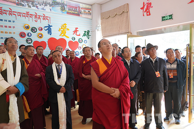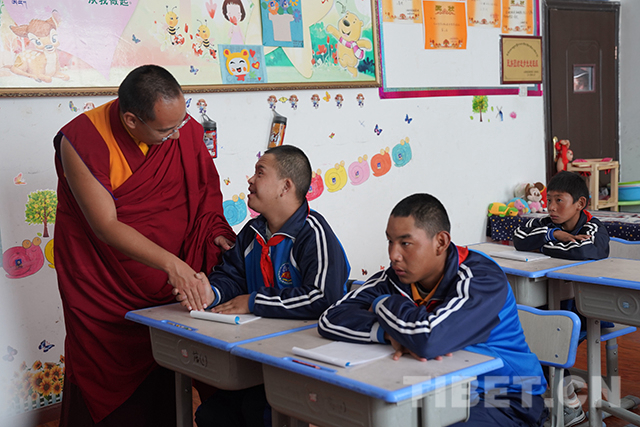 “喜歡這份工作嗎?”“愿意做這份工作嗎?”在康復(fù)區(qū)參觀調(diào)研時,十一世班禪仔細(xì)詢問老師們的工作情況并對他們說:“你們在這里為這些殘障的孩子奉獻(xiàn),很了不起,向你們致敬?!?/p>