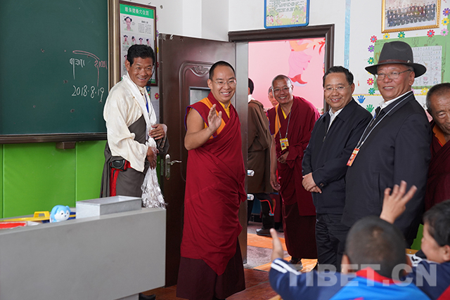 圖為十一世班禪參觀調(diào)研學(xué)校。攝影:王淑