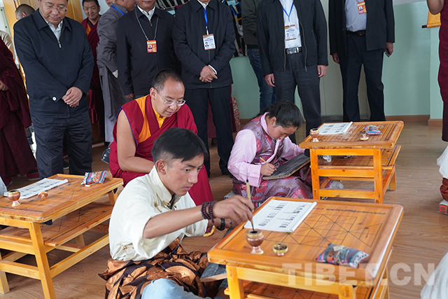 十一世班禪來到藏文書法室。攝影:王淑