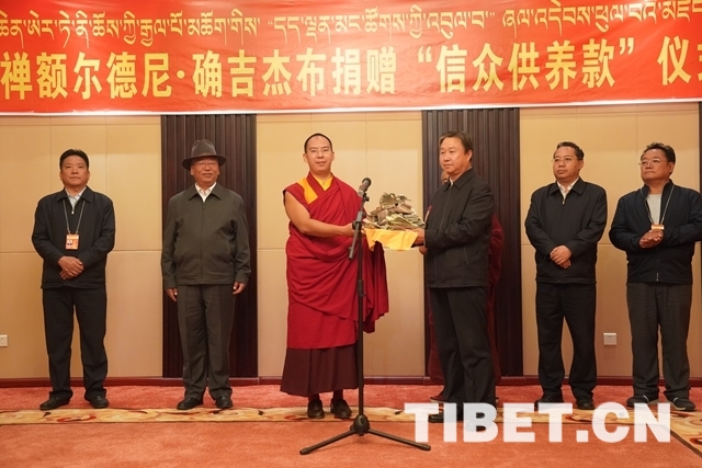 捐贈(zèng)儀式上,十一世班禪說(shuō):“我現(xiàn)在養(yǎng)成了一個(gè)習(xí)慣,也是自己的心愿,這不是我個(gè)人的捐贈(zèng),我只是為廣大信教群眾轉(zhuǎn)贈(zèng)供養(yǎng)款。信教群眾希望我能夠好好念經(jīng)、祈禱,能夠?yàn)樽o(hù)國(guó)利民、愛(ài)國(guó)愛(ài)教做一些努力,我一定不會(huì)辜負(fù)信教群眾的殷切期盼。我們自己生活都有保障,信教群眾這些供養(yǎng)款都是一分一分用心血掙來(lái)的,還是該回饋給山南,特別是捐助給當(dāng)?shù)氐姆鲐毷聵I(yè)是最恰當(dāng)?shù)??!?/p>