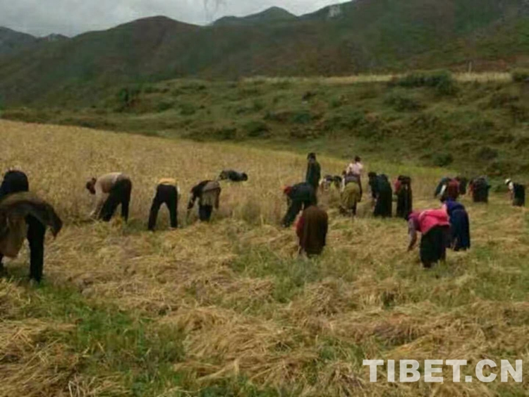 洛絨登巴家有10畝承包地,秋收成了大問題。過去秋收,家家都是人工手割,一人累了一天也割不了1畝地,耽誤農(nóng)時(shí)不說,還影響收成。像青稞麥類農(nóng)作物,太陽一曬,青稞崩落地了。像他家這么多的土地,用人工根本收不過來。甲洼鎮(zhèn)政府現(xiàn)擁有2臺(tái)聯(lián)合收割機(jī),收割、脫粒、裝袋三道工序一次完成!過去得10多人收一周時(shí)間的地,現(xiàn)在兩小時(shí)便搞定了,而且做到了顆粒歸倉、秸稈還田!秋收時(shí)節(jié),整片地里,聯(lián)合收割機(jī)像技藝精湛的畫家,隨心所欲、胸有成竹、瀟灑自如地在壟間地頭揮毫!片片莊稼倒下后,袋袋糧食裝上拖拉機(jī)……那場(chǎng)面,甚是宏大而喜人!連洛絨登巴的岳母大人目睹秋收?qǐng)鼍昂?,也不由感慨地說:“這一眨眼的工夫,糧食已從田間送進(jìn)倉了,簡(jiǎn)直像變戲法一樣!”