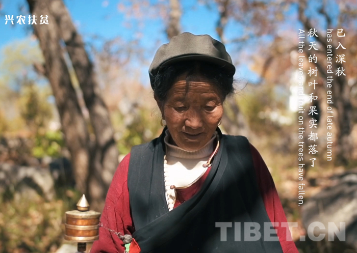 中國西藏網(wǎng)訊 四川省甘孜藏族自治州鄉(xiāng)城縣青德鎮(zhèn)仲德村藏族老阿媽卓瑪搖曳著手中的經(jīng)輪,在自家蘋果樹下守望著,老人說,“要等11月,把最好的果子送給有緣的人”。