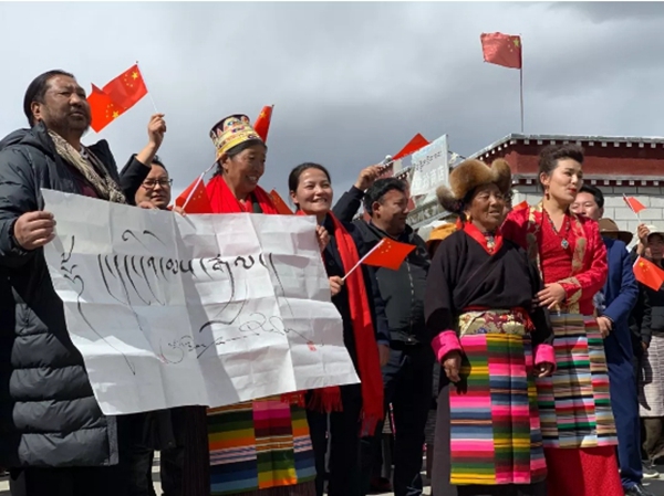 3月20日,西藏民主改革第一村——克松村為慶祝西藏民主改革60周年開展了一場《我和我的祖國》快閃活動?;顒蝇F(xiàn)場,有新時代建設西藏、支援西藏的干部、教師,有藏漢回等民族團結(jié)家庭,有充滿青春活力的街舞少年,有生在西藏長在西藏的“藏三代”,也有80多歲高齡歷經(jīng)西藏民主改革的老人。他們揮舞國旗,用歌聲以及用藏文書寫“我和我的祖國”,表達著對祖國無限的熱愛。