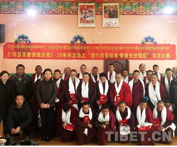 3月25日,西藏自治區(qū)日喀則市仁布縣開展宗教領域慶?!??28”系列活動?;顒又校什伎h廣大僧尼以書法的形式抒發(fā)著在中國共產(chǎn)黨的堅強領導下,西藏社會發(fā)生的翻天覆地變化,以及“不忘舊西藏的苦、珍惜新西藏的甜”的感情。