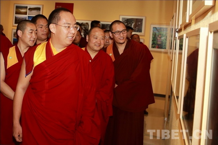 圖為十一世班禪參觀“攝影家眼中的西藏”展區(qū)。攝影:陳衛(wèi)國