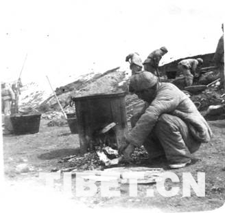 圖為進藏路上炊事員在做飯。
