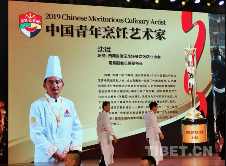 圖為在2019烹飪藝術(shù)家年會(huì)上,沈斌被授予“中國(guó)青年烹飪藝術(shù)家”稱(chēng)號(hào)。西藏烹飪餐飲飯店業(yè)協(xié)會(huì)供圖